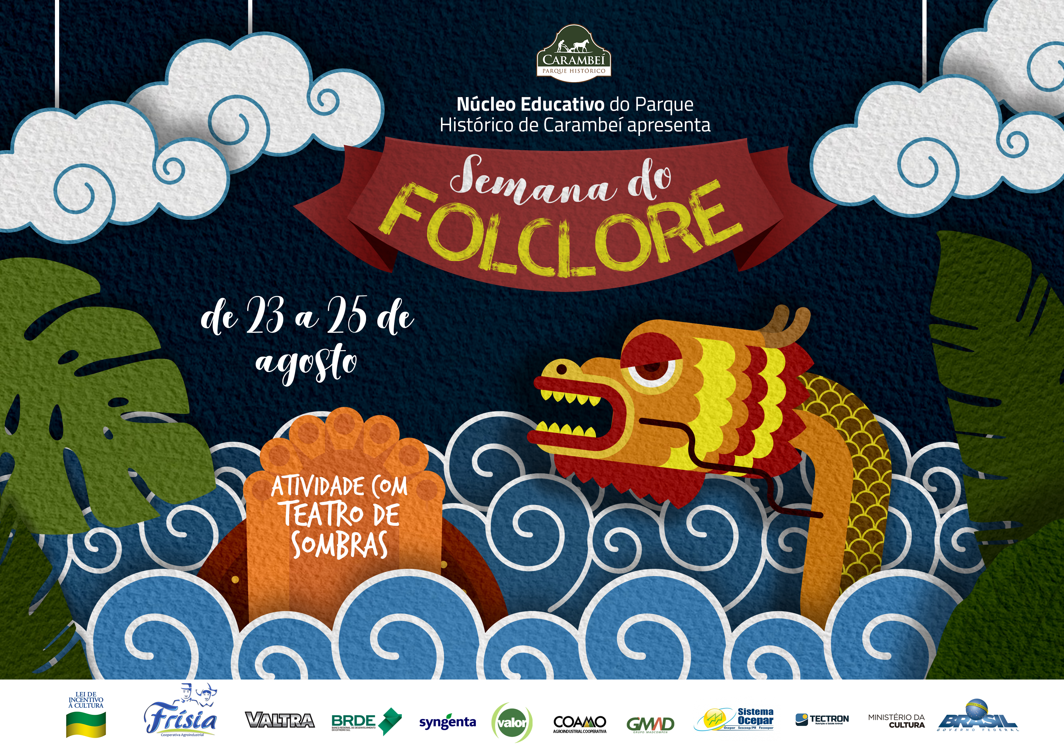 No dia 22 de agosto é celebrado o Dia do Folclore, data criada com a finalidade de valorizar as manifestações culturais. Para comemorar este dia tão representativo o Núcleo Educativo do Parque Histórico de Carambeí realizará, entre os dias 23 e 25 de agosto, a Semana do Folclore.
