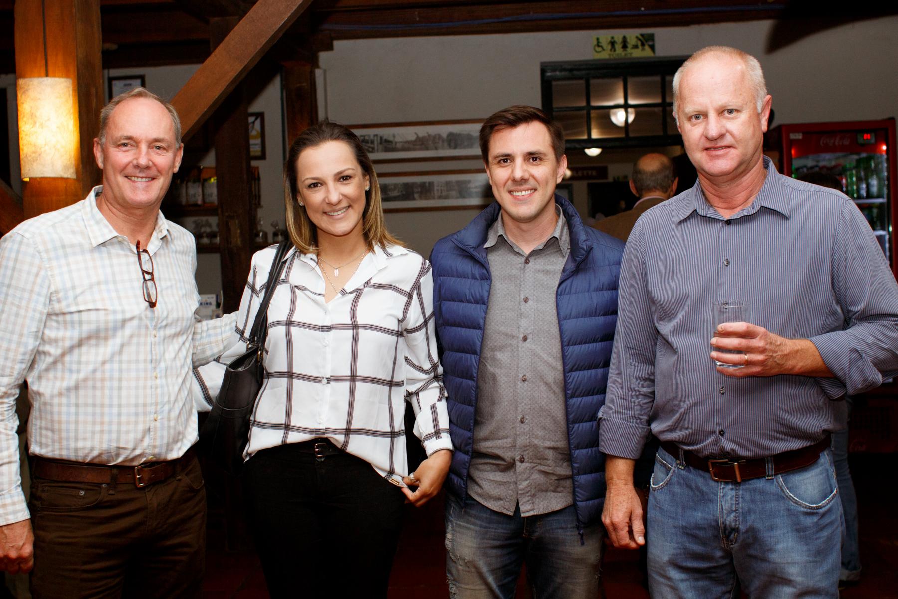 O presidente da Frísia Cooperativa Agroindustrial Renato Greidanus, a coordenadora comercial da RPC Ana Karina Maciel, Jheyson Dareli do marketing da RPC e Gaspar de Geus vice-presidente da Frísia comemoram a parceria em mais uma edição do Natal no Parque.