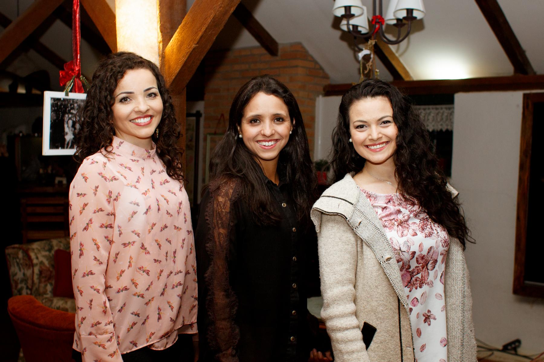 As solistas do espetáculo Natal em Família Luciana Cristina de Souza e Juliana Souza do Carmo ao lado da cantora e personagem principal do Auto de Natal Bruna Pontes.