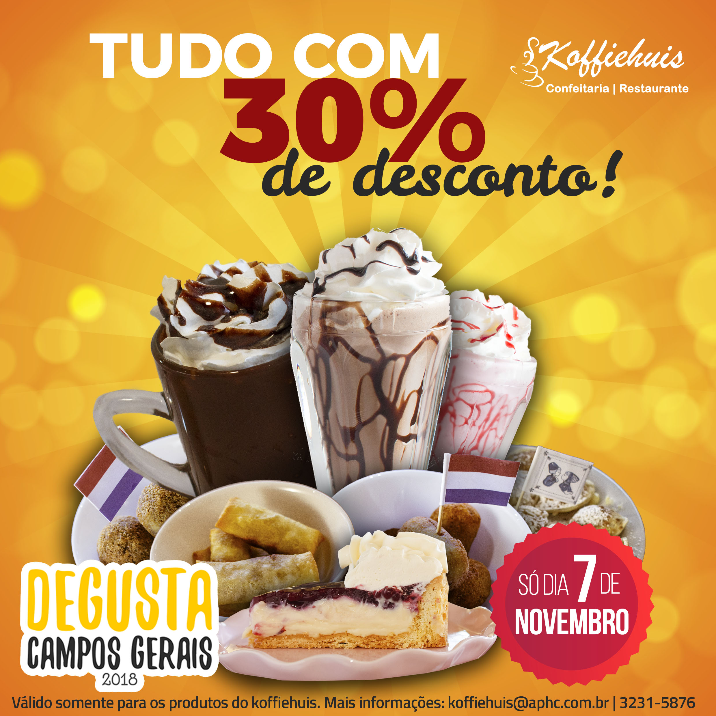 O Parque Histórico de Carambeí participa do Degusta Campos Gerais, ação promocional realizada pela Rede Gastronômica dos Campos Gerais com o intuito de movimentar o cenário gastronômico da região. Devido ao evento, na quarta, dia 7, o Koffiehuis Confeitaria e Restaurante do Parque dará 30% de desconto em todo o menu.