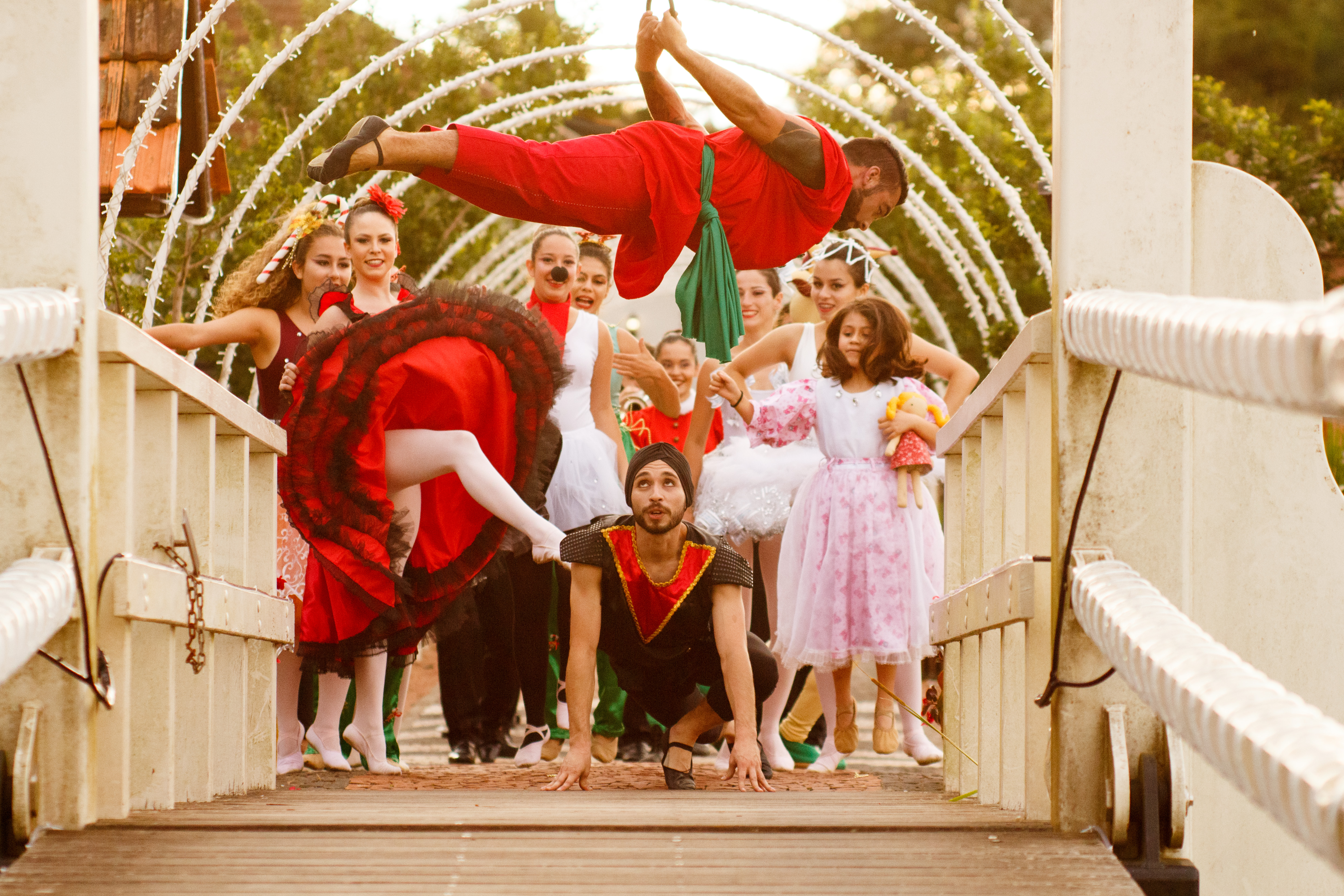 Bailarinas com trajes bem coloridos e alusivos ao Natal, com detalhes de presentes, pinheiros e símbolos natalinos. A trupe do circo faz malabarismo, piruetas e acrobacias. Seguem acompanhando o Desfile de Natal os personagens principais do espetáculo Natal de Todos os Povos e o Papai Noel ao som da Banda Marcial do Colégio Santana da cidade de Ponta Grossa. O grupo se concentra em frente ao Koffiehuis Confeitaria e Restaurante Parque Histórico, às 18h45 sai em desfile pela Vila Histórica e Parque das Águas.