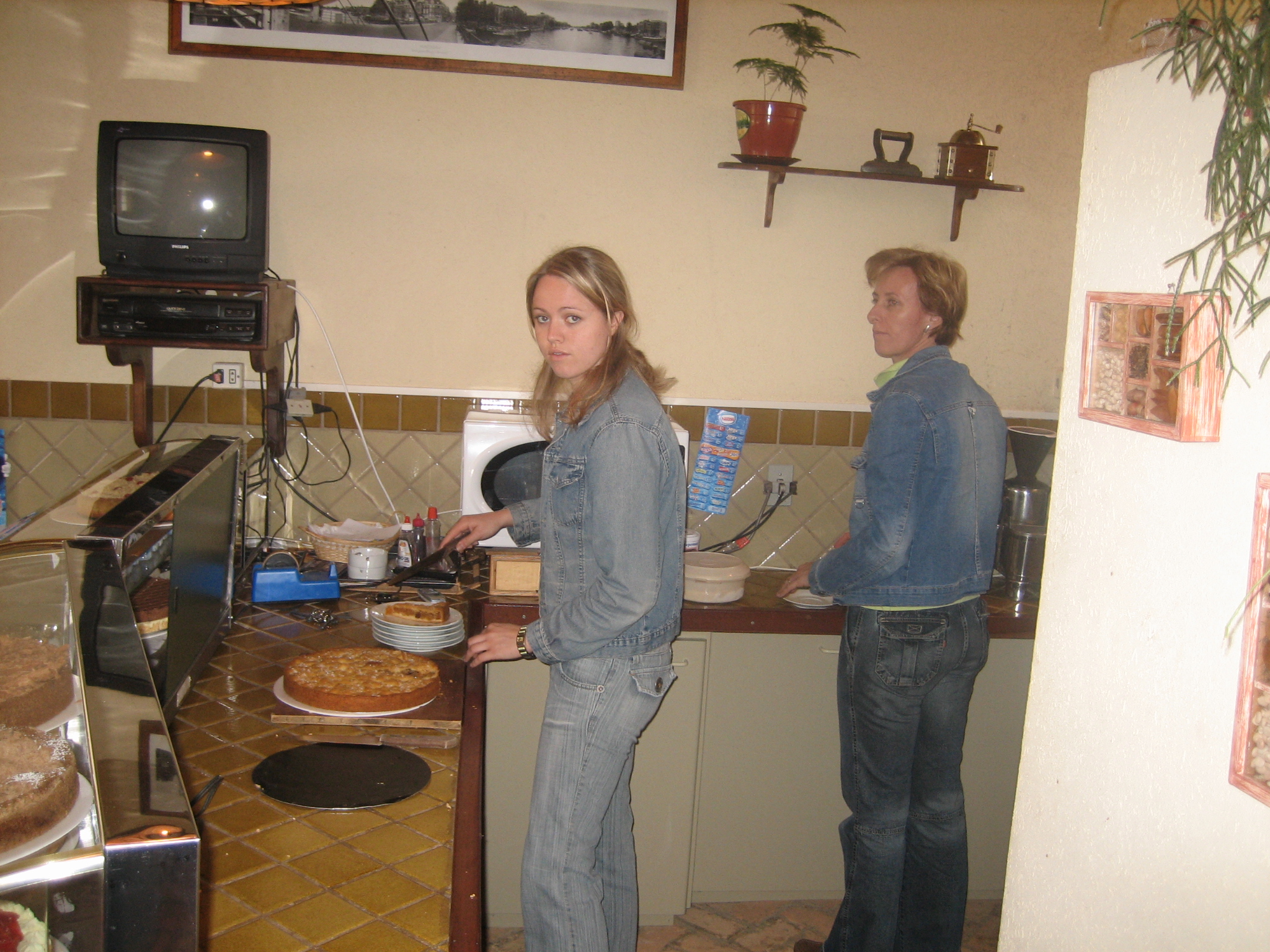 Elizabeth e Fredeica Dykstra no café no Parque Histórico de Carambeí
