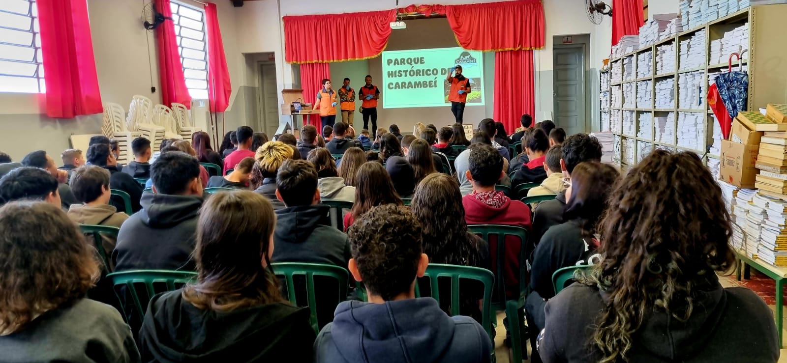 O Núcleo Educativo do museu Parque Histórico de Carambeí realizou formação de plateia no Colégio Estadual Júlia Wanderley e no Colégio Estadual Carlos Ventura. Em dois dias a equipe do Parque Histórico apresentou o museu, a história e a cultura de Carambeí para 1.696 alunos.