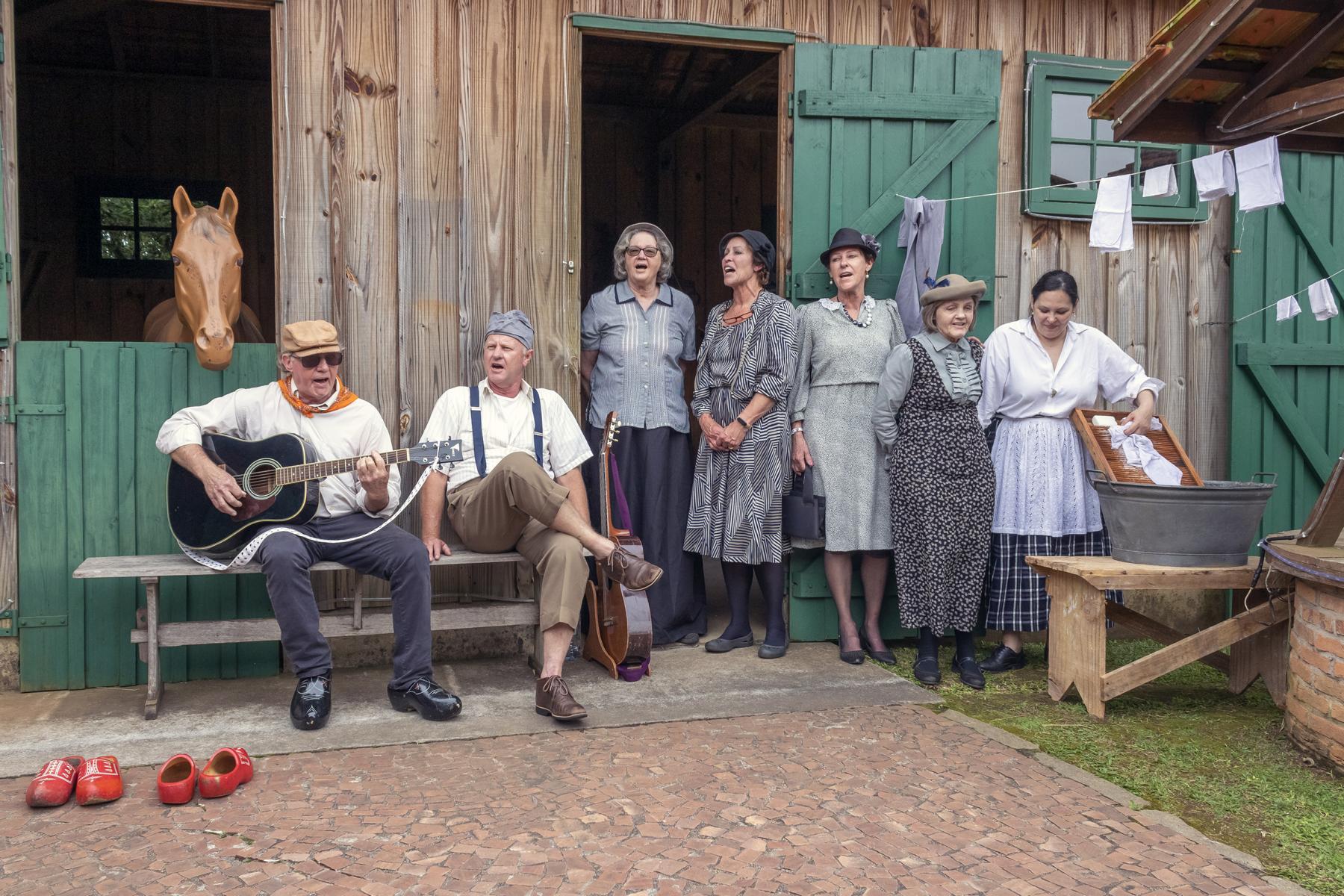 Encenação do cotidiano dos imigrantes no Museu Parque Histórico de Carambeí