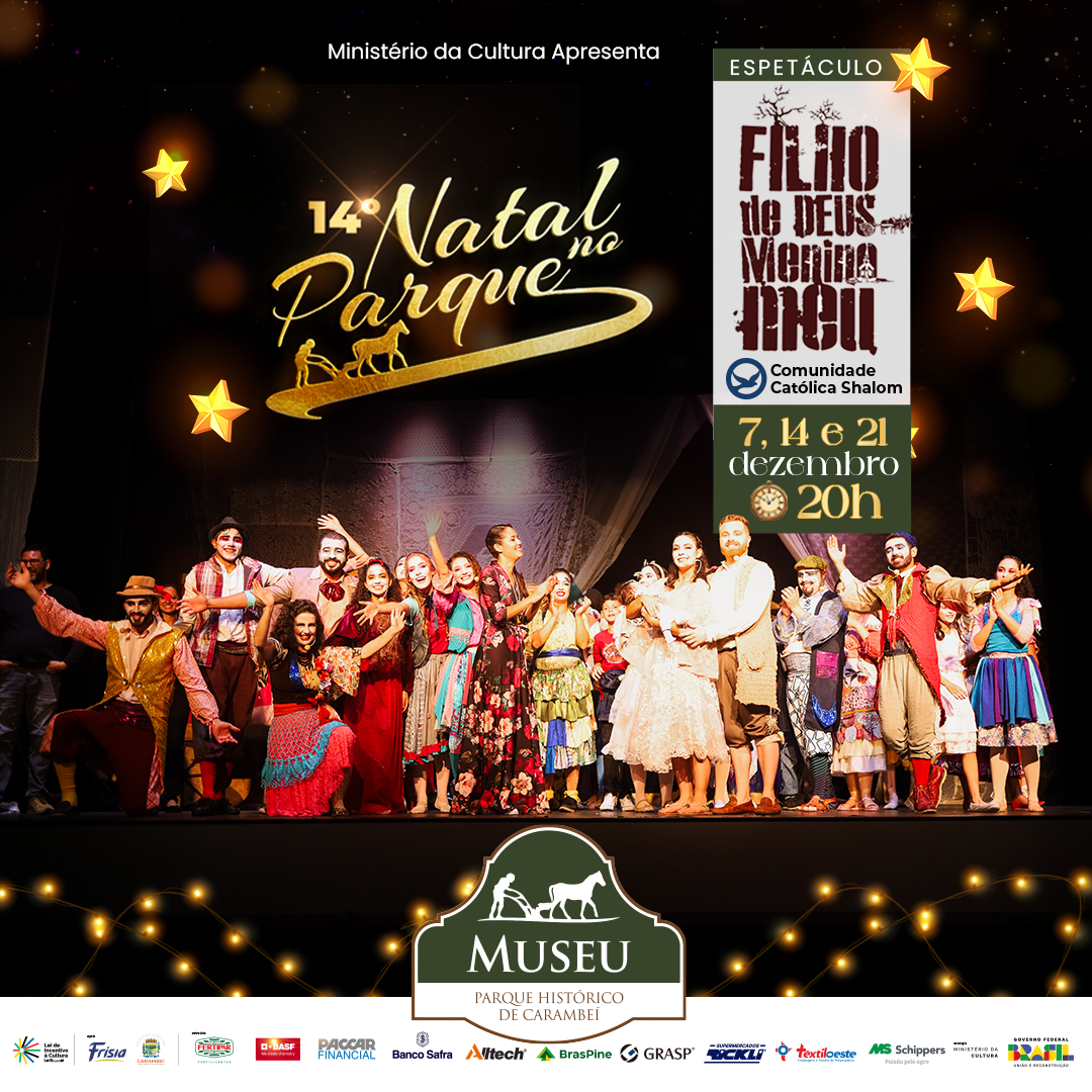 O Natal no Parque é um dos principais eventos natalinos dos Campos Gerais, realizado pelo Museu Parque Histórico de Carambeí, acontecerá entre os dias 6 e 22 de dezembro de 2024. Para a 14ª edição do evento natalino, o espetáculo principal tradicionalmente apresentado nas noites dos sábados é um auto de Natal que narra o nascimento do menino Jesus, desta vez, trará uma proposta diferente de abordagem.