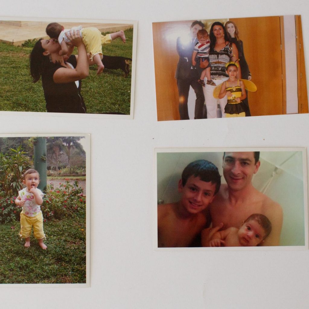Escolhi essas fotos porque elas mostram quem eu era quando era pequena, entre os meus 9 meses e 1 ano de idade. A primeira foto que eu mostrei foi a que eu estava no Jardim da minha professora Elaine, com o dedo na boca, a segunda eu estava no colo do meu pai e meu irmão mais velho tomando banho, já na terceira foto a minha mãe estava me segurando no colo e ao mesmo tempo me beijando.